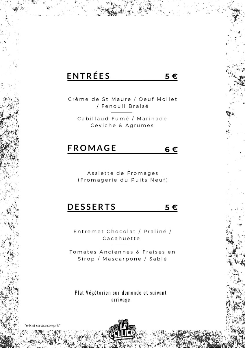 Le Cellier Menu